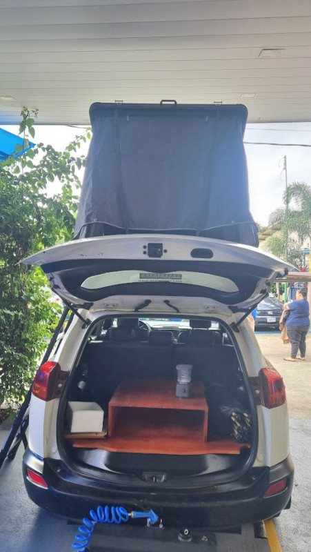 Notre robuste TOYOTA RAV4 4 portes 4x4 est le meilleur moyen-toit-campeur pour des vacances inoubliables dans la jungle et sur la plage et partout où vous voulez aller. La tente de toit de haute qualité ouvre et ferme en 2-3 minutes ! Fabriqué à partir de matériaux haut de gamme, il garantit un confort de qualité supérieure et une durabilité remarquable. Installer ou démonter cette tente de toit est un jeu d’enfant. Dites adieu aux tracas inutiles! De plus, ses portes et fenêtres favorisent une excellente circulation d’air et offrent des vues panoramiques sur votre environnement, améliorant ainsi votre expérience globale.