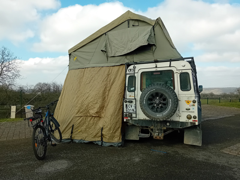 Equipé pour des bivouac en autonomie, il peux recevoir 3 personnes dans sa toile de tente de toit ainsi que 1 à 2 personnes dans la cabine arrière, douche extérieur, frigo, chauffage indépendant, rangements et son grand auvent fermé vous permettra de profiter des extérieurs en tout temps.