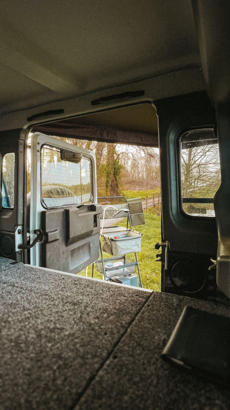 Vous trouverez à l’arrière une tablette « coin cuisine » mais également le réservoir d'eau, le réfrigérateur/congélateur (deux compartiments, idéal pour la Ben&Jerry's de cet été). Vous y trouverez également vos équipements de repos (table, chaises confort, repose pieds…). L'alimentation en eau chaude se fait via un chauffe-eau Kampa Geyser procurant de l'eau chaude instantanément: les douches deviennent bien plus agréables !