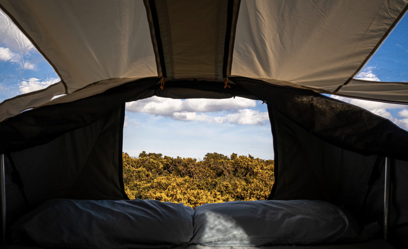 Pouvant accueillir jusqu'à 2 personnes, elle est équipée d'une tente de toit Thule Approach, unique à LandyCampers, qui se déplie du côté du conducteur pour créer un lit plus grand qu'un lit double, avec un matelas en mousse confortable, une literie incluse et des fenêtres ouvertes. sur les 4 côtés, des fenêtres de toit avec stores pour une sensation unique de « dormir à la belle étoile » et une grande pièce annexe amovible. Son tissu sombre offre des conditions presque occultantes à l'intérieur lorsque les toiles d'intimité sont fermés, créant ainsi la « grotte » parfaite pour une nuit de sommeil longue et réparatrice !