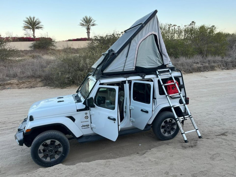 Grâce à sa tente de toit intégrée, transformez chaque halte en expérience de camping pratique et inoubliable, en pleine nature. Que vous partiez pour un road trip en Basse-Californie, un séjour d’aventure ou simplement profiter des grands espaces mexicains, le Wrangler Sahara 4x4 avec tente de toit est le véhicule parfait pour allier style, confort et liberté totale.