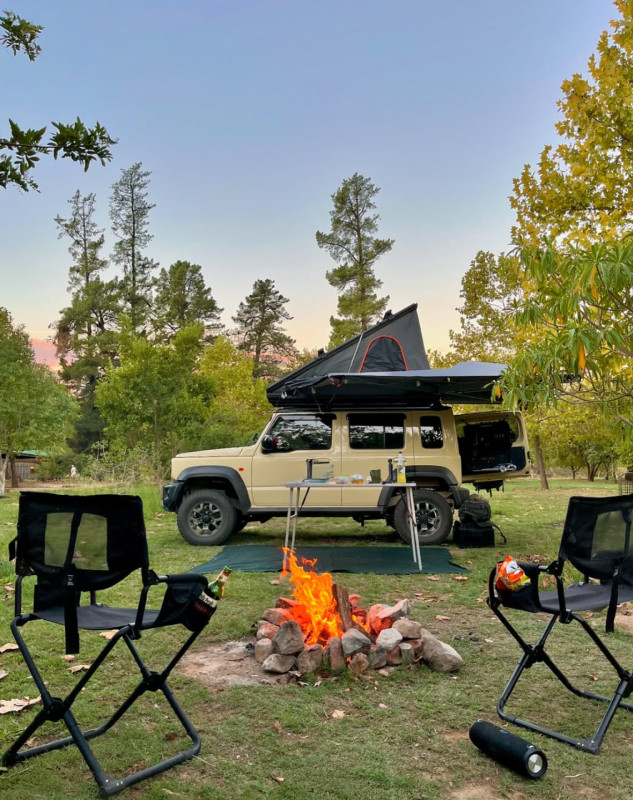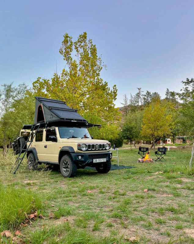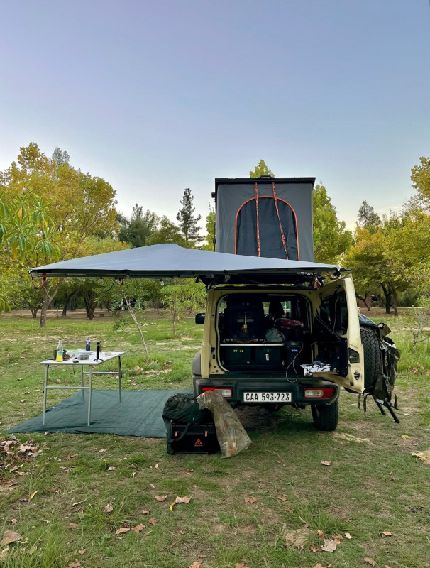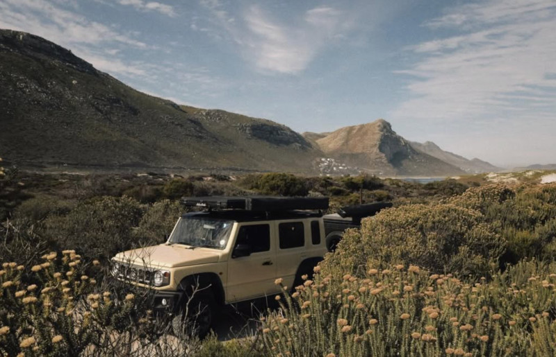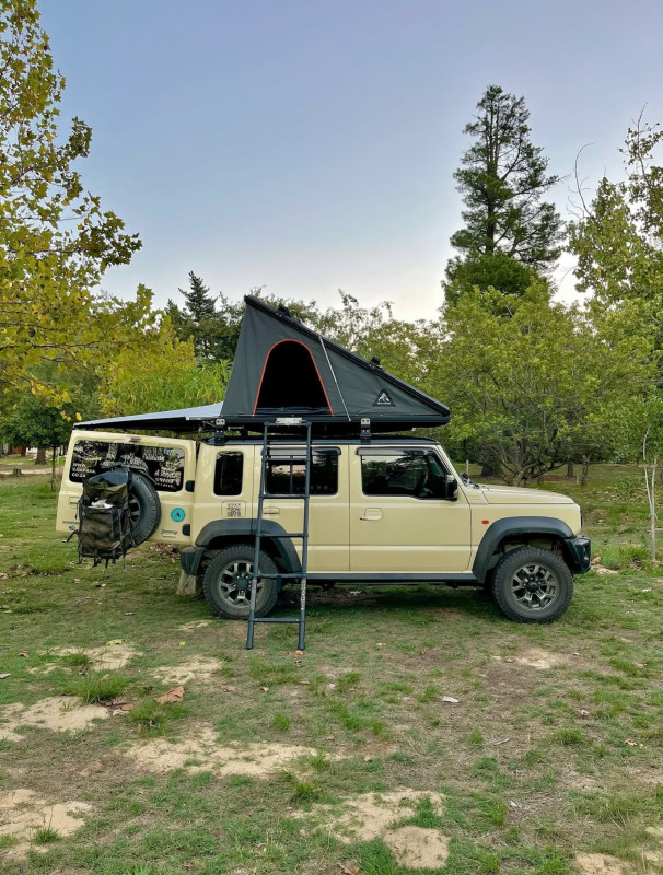 Le Jimny Elly est un petit 4×4 tout-terrain aménagé pour accueillir 2 personnes dans une configuration « camping + aventure ».