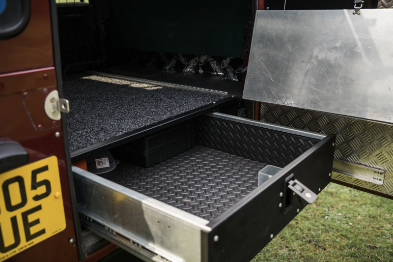 Cherry Belle est un magnifique Land Rover Defender 110 TD5. il peut accueillir 5 personnes confortablement avec sa tente de toit familiale ikamper et son auvent complet à 270 degrés avec côtés. Cherry a déjà une grande histoire de voyage, ayant parcouru toute l'Europe en tant que véhicule d'aventure Overland. il est équipée d'eau à bord, d'un réfrigérateur-congélateur et d'une alimentation 12 V et 240 V, suffisamment pour rester hors réseau pendant une période substantielle. il dispose également d'une station de cuisson et d'un tiroir de rangement pleine grandeur. Toutes nos locations incluent tout ce dont vous avez besoin pour camper et vivre une grande aventure, où que vous décidiez de vous rendre.