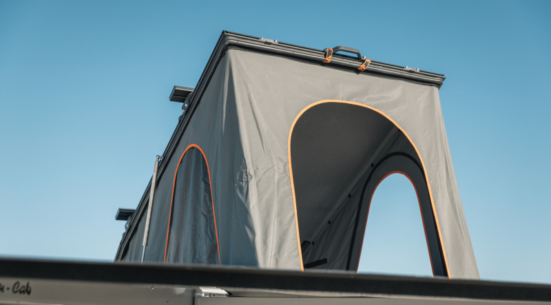 Totalement équipé pour le camping : une tente de toit avec literie, une cuisine entièrement équipée, un auvent 270° de type Alu-Cab pour s’abriter, une table et deux chaises de camp, un réservoir d’eau de 50 L, un réchaud à gaz, des toiles de sol (ground sheets), du matériel de secours (recovery gear), une trousse de premiers secours et une roue de secours.