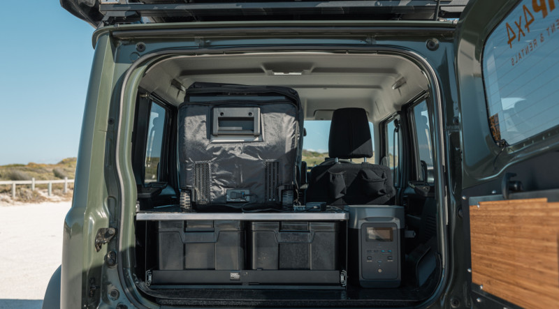 Le Jimny Tay est un petit 4×4 tout-terrain aménagé pour accueillir 2 personnes dans une configuration « camping + aventure ».