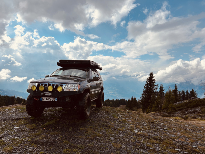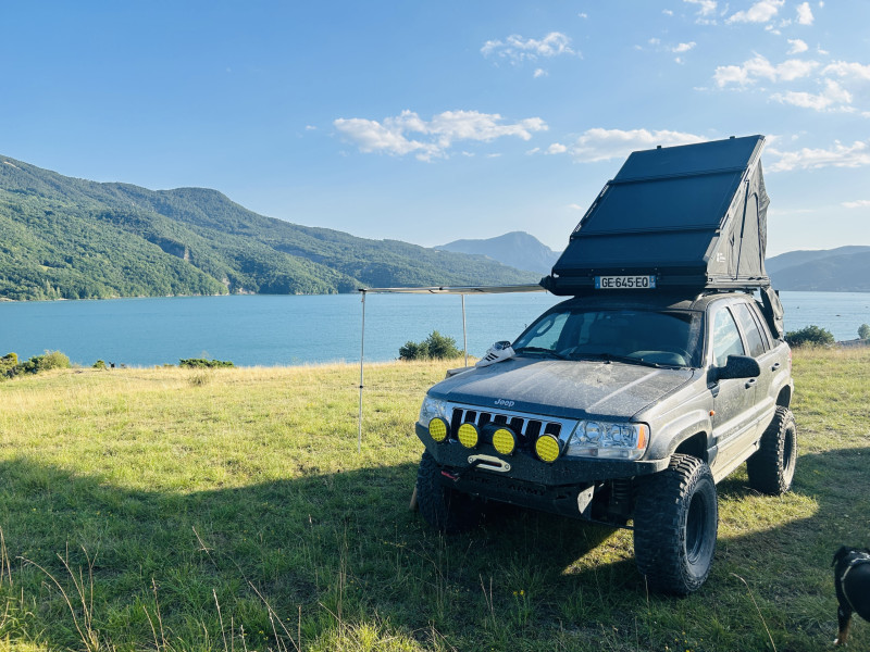 Jeep Grand cherokee Offroad et Bivouac ( 2 places, sièges arrière supprimé pour rangement et lit du toutou )