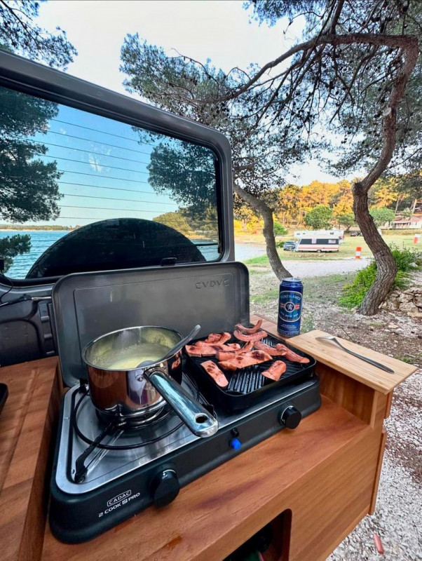 Le Land Rover Defender est parfaitement équipé pour des escapades en pleine nature. Profitez du confort et de la robustesse de ce véhicule emblématique, idéal pour parcourir les routes montagneuses et les sentiers isolés de la Slovénie. Son système de camping intégré comprend tout ce dont vous avez besoin pour un séjour en autonomie : tente sur le toit, équipement de cuisine, réserves d'eau et de carburant.