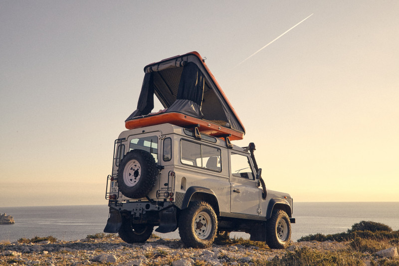 Original, maniable, et très stylé, ce mythique Land Rover Defender 90 TD5 est la configuration idéale pour un court séjour en pleine nature. Taillé pour l'aventure, il est équipé d'une tente de toit James Baroud rigide qui garantie un confort exceptionnel lors de vos bivouacs dans les conditions les plus extrêmes.