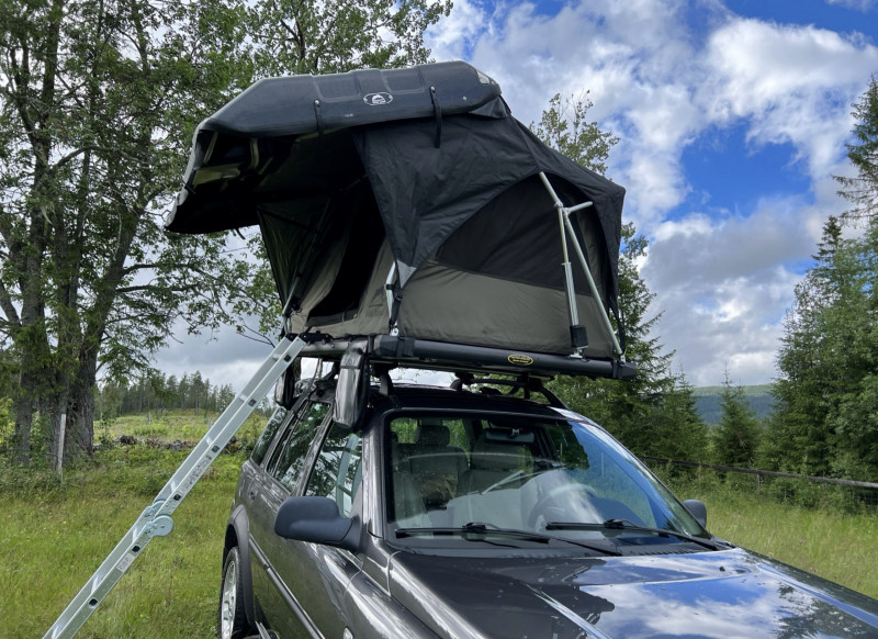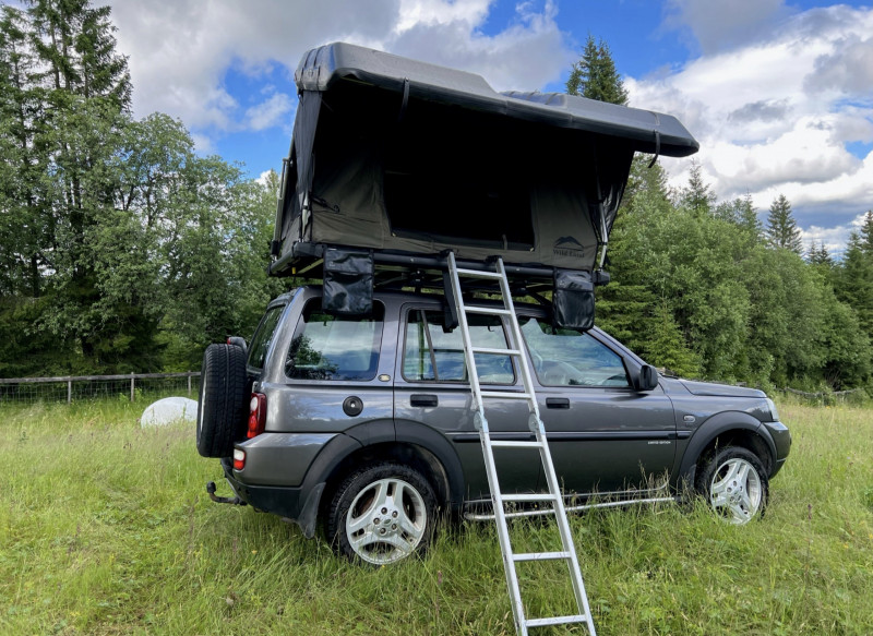 Fiona peut être livrée avec cuisine et glacière si vous le souhaitez. Elle est équipée d'une tente de toit Pathfinder 2 électrique. Appuyez sur la télécommande et le lit est prêt, du moins presque.