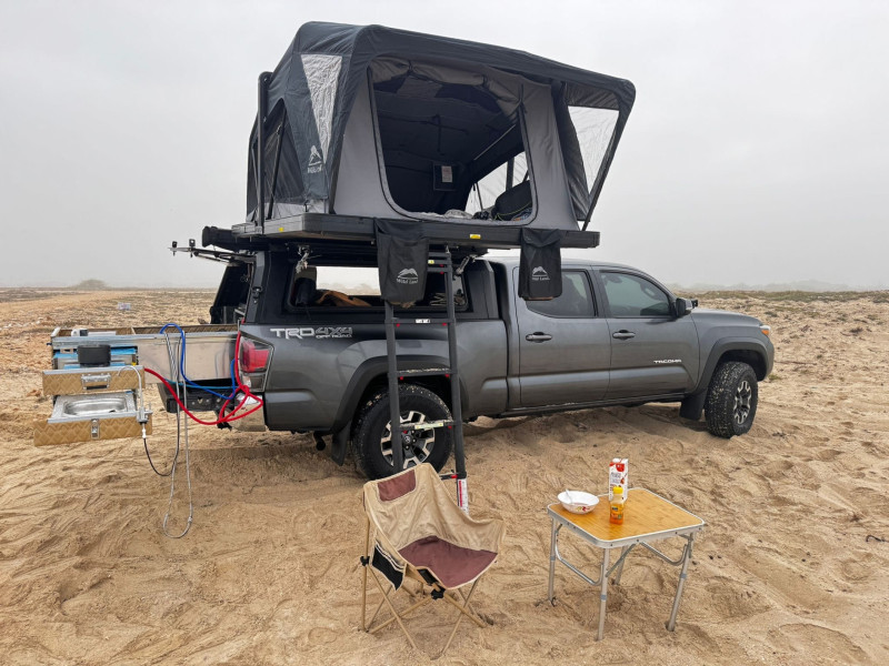Pour vos nuits en extérieur, profitez d’une tente de toit pouvant accueillir 2 adultes (avec la possibilité d’en fixer jusqu’à deux) ainsi qu’une tente au sol disponible avec matelas selon vos besoins sans cout supplémentaire. Le véhicule est entièrement équipé pour un séjour sans souci : douche portable, toilettes, matériel de camping complet et tout le nécessaire pour cuisiner en plein air.