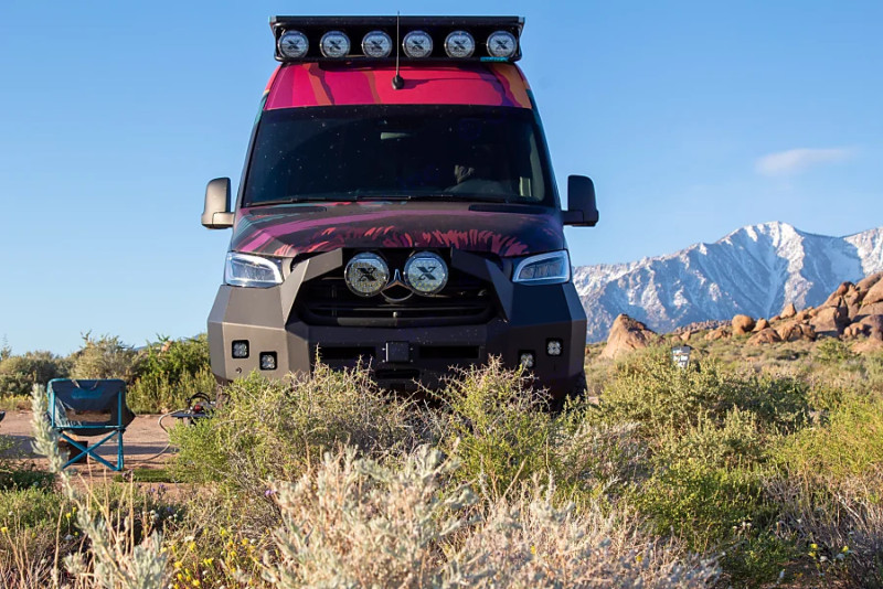 Notre Mercedes Sprinter Custom Rogue Vans 2023 est disponible à la location. Construit sur le châssis Mercedes 144 AWD, ce van est équipé de toutes les options premium disponibles. Notre aménagement classique Summer comprend une banquette Freedman pliable pour deux personnes derrière le siège capitaine du conducteur, suivie d'une petite cuisine en deux parties et de banquettes opposées qui se transforment en lit. Le système électrique est logé dans la banquette côté passager, tandis que le système d’eau est dans la banquette côté conducteur.