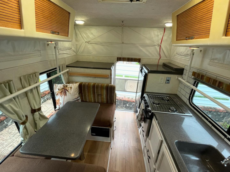 Le Hilux Camper est aménagé pour accueillir jusqu’à 3 voyageurs, avec un lit double et un lit simple, la climatisation, un ventilateur de toit, et plusieurs fenêtres moustiquaires pour des nuits au frais. Les draps et serviettes sont bien sûr inclus — vous n’avez qu’à poser vos valises.