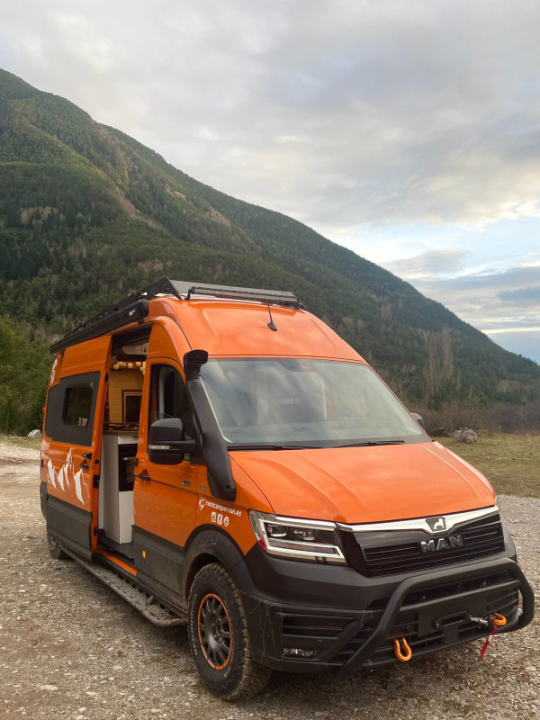 Louez un MAN 4x4 TGE Orange Camper Van Premium Tout Équipé pour une Aventure Inoubliable !