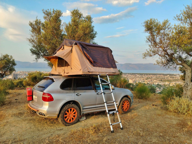 Pour une expérience d’aventure complète, nous proposons une tente de toit avec équipement de camping complet, idéale pour passer la nuit sous les étoiles. Du matériel de camping supplémentaire peut également être fourni.
