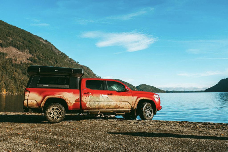 Partez à l’aventure en Colombie-Britannique avec notre Toyota Tacoma équipé d’une tente de toit iKamper !